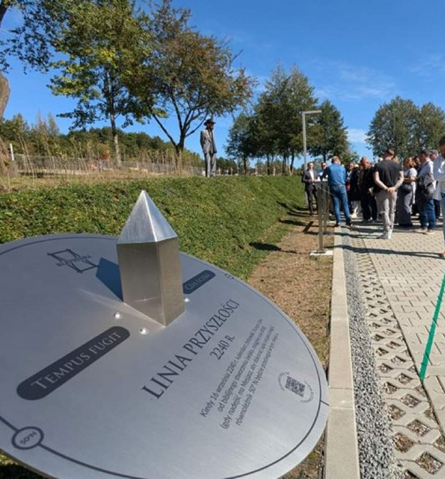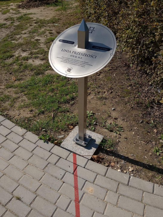 Wobec tego, po 10 latach równoleżnik 50° N przebiegać będzie 15,5 cm na południe od swojej obecnej pozycji. Po 100 latach różnica wyniesie 1,55 metra; po tysiącleciu będzie to aż 15,5 metra... W ten sposób równoleżnik kreśli swoistą oś czasu na geologiczną skalę i pomnik "TEMPUS FUGIT" ukazuje ten wiekuisty ruch - niczym sam upływ czasu - na skalę przerastającą ludzkie pojęcie: niczym sama wieczność…