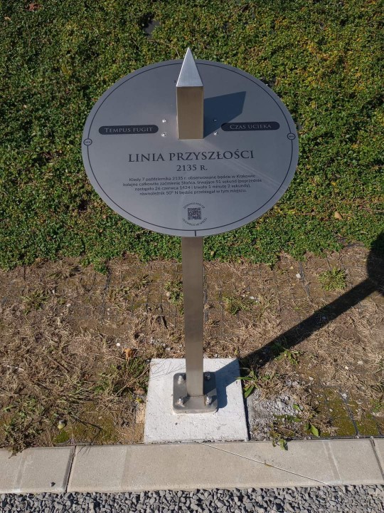 Kiedy 7 października 2135 r. obserwowane będzie w Krakowie kolejne całkowite zaćmienie Słońca, trwające 51 sekund (poprzednie nastąpiło 26 czerwca 1424 i trwało 1 minutę 2 sekundy), równoleżnik 50° N będzie przebiegał 2 m 27 cm na południe od linii równoleżnika 50° N (ETRF89).