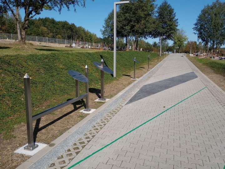 Stalowa szyna ma szerokość 1,5 cm, dystans rocznego dryfu równoleżnika, zaś okalający szynę ciemny pas o szerokości 119,4 cm odpowiada 77,3 latom dryfu kontynentu, czyli średniej długości życia przeciętnego Polaka.